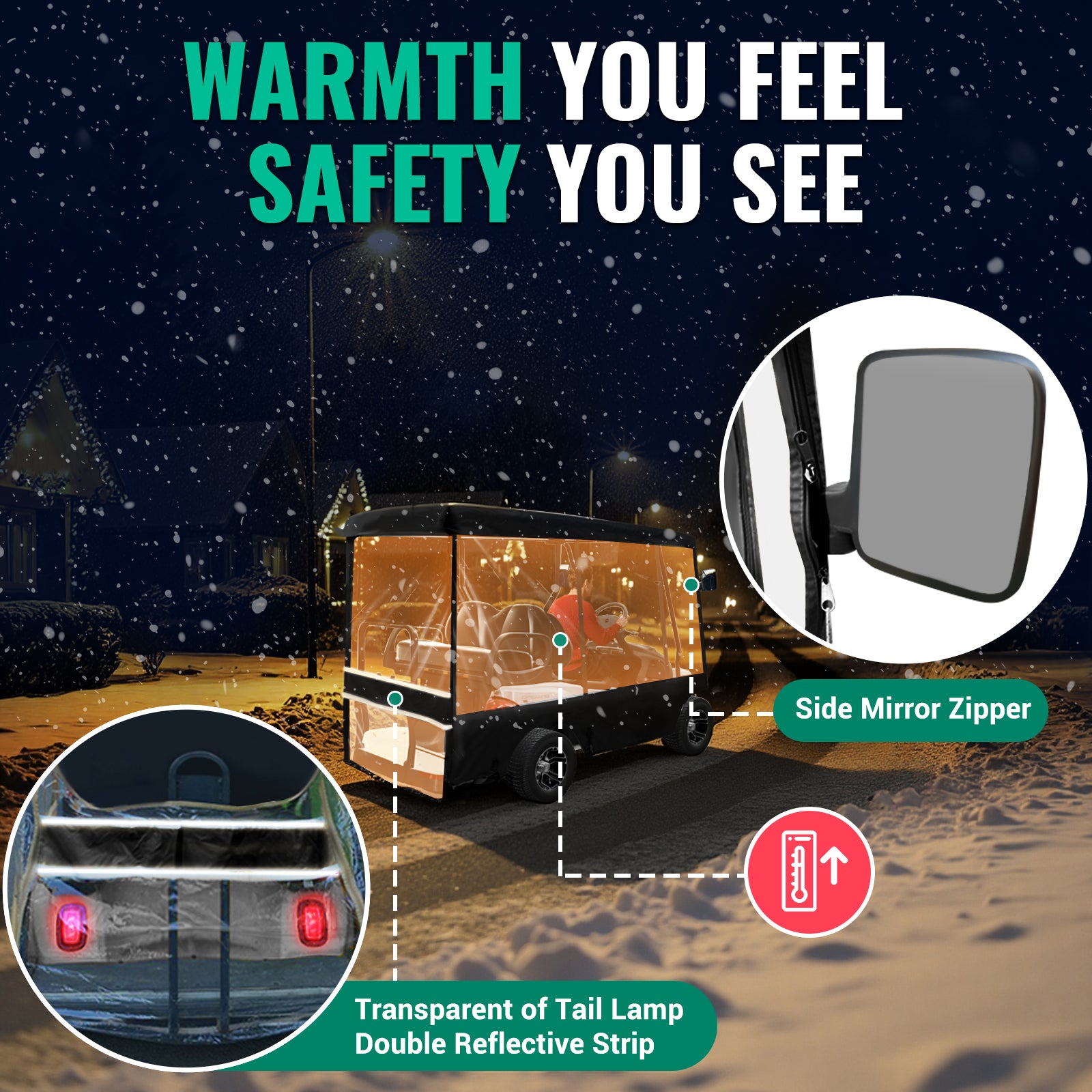 Universal 4-Passenger Golf Cart Enclosure, 78.7" Extended Roof for EZGO Yamaha Club Car Evolution, 600D+PVC, 4-side zips