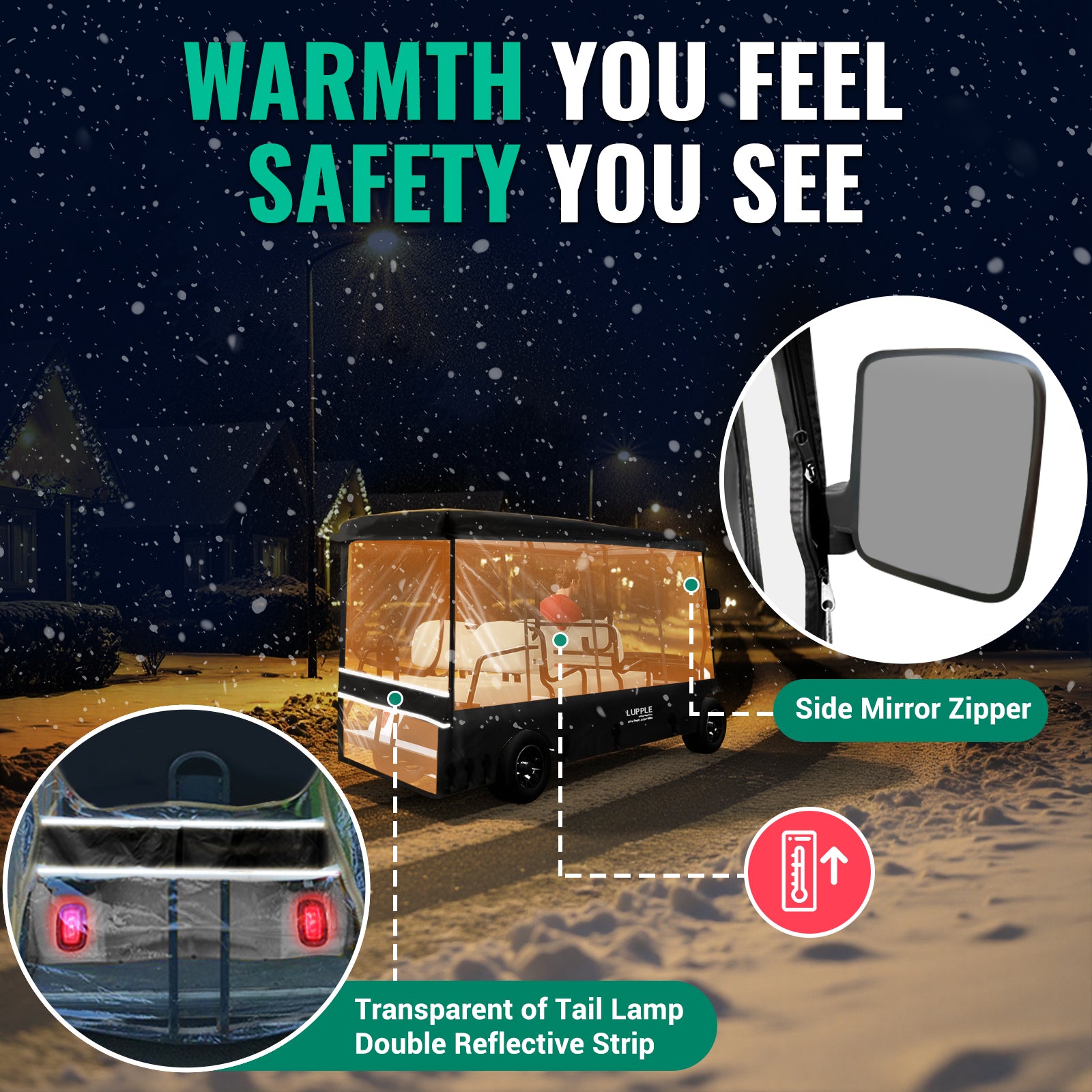 - Full Visibility & Rear Light Safety: Clear PVC panels on all sides. Rear area fully transparent with reflective strips for improved night visibility
